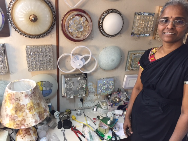 Vrishali at her workbench