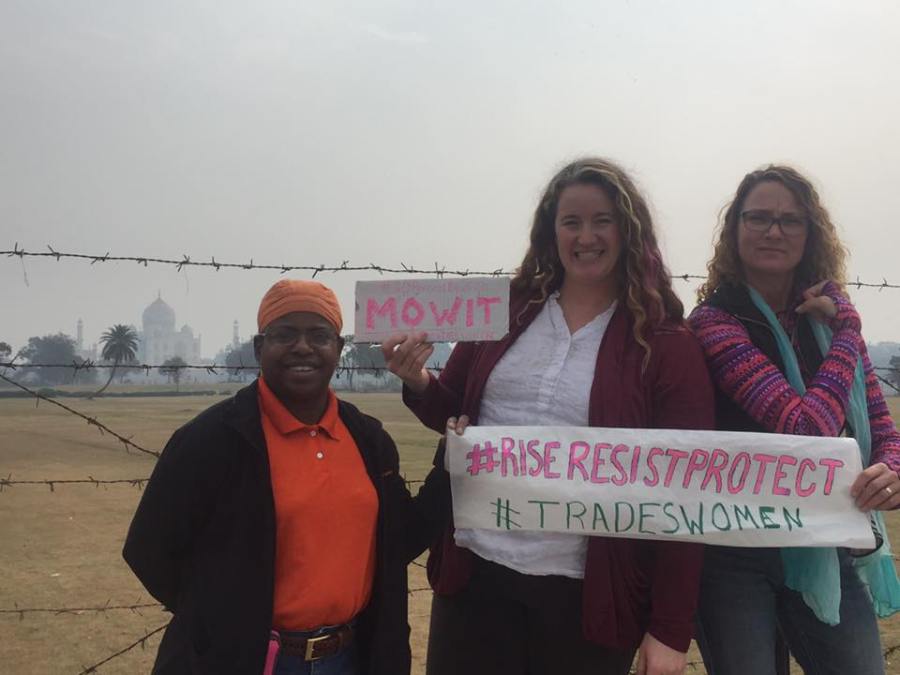 Tradeswomen and advocates protest the Trump inauguration at the Taj Mahal